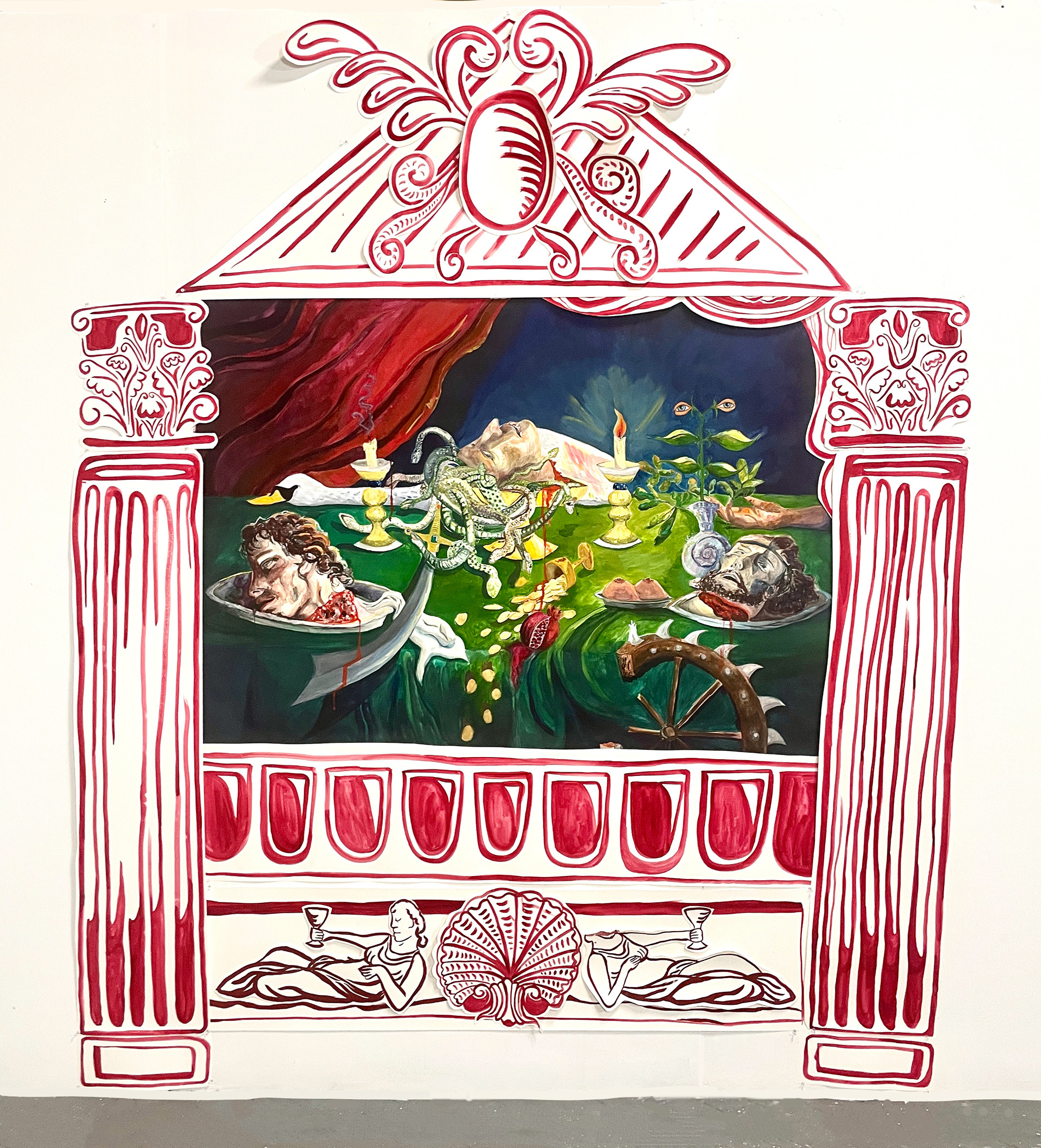 Feast, watercolor and gouache on paper, 6' x 8', 2023-2025